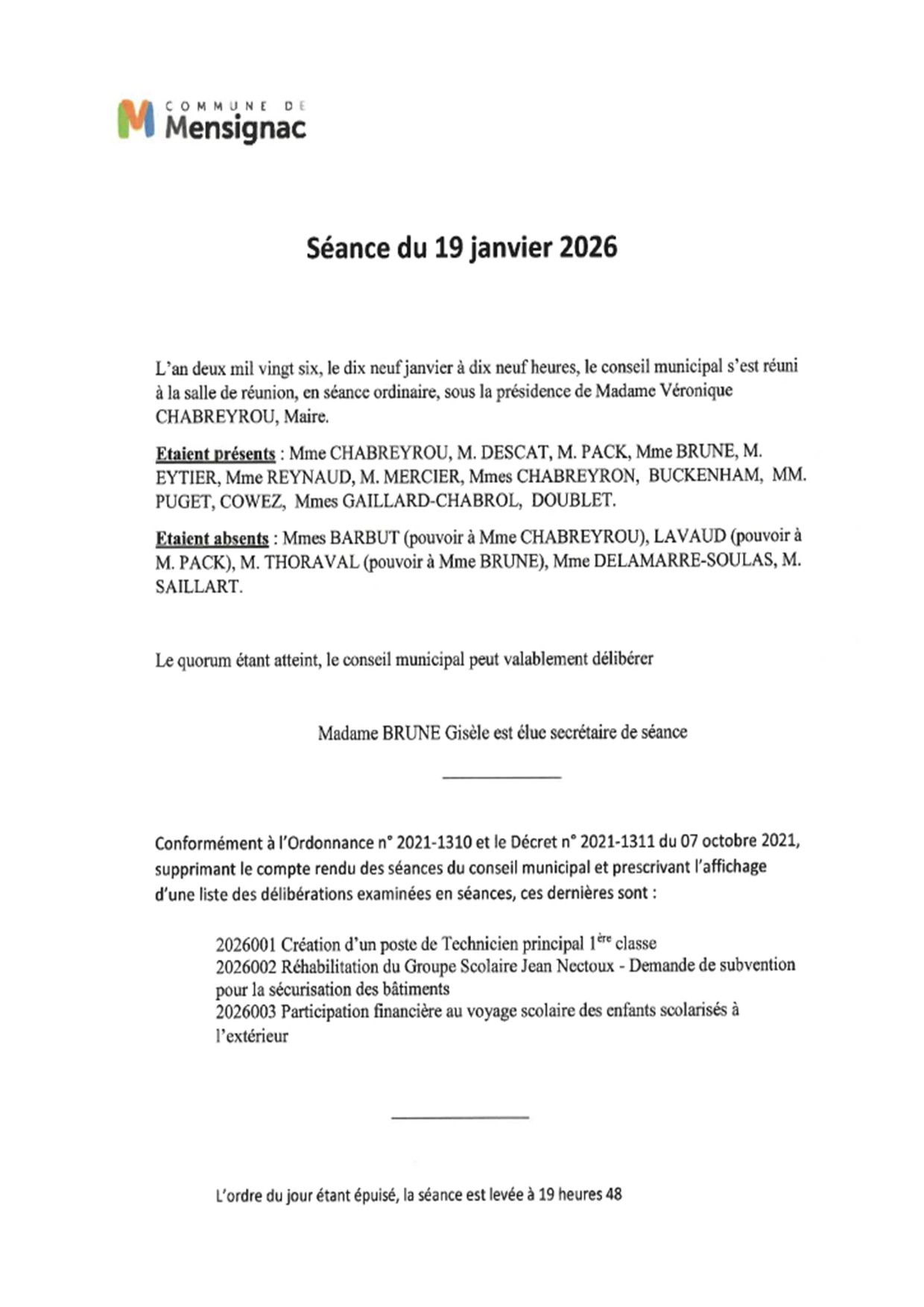 Compte-rendus Conseils Municipaux 2026, 2025, 2024, 2022, 2021, 2020 et 2019
